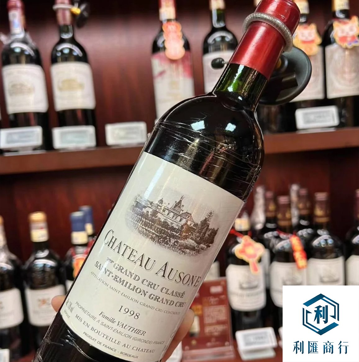酒標與年份: 確保酒標完整,清晰顯示 Château Ausone 和 1998 年份。